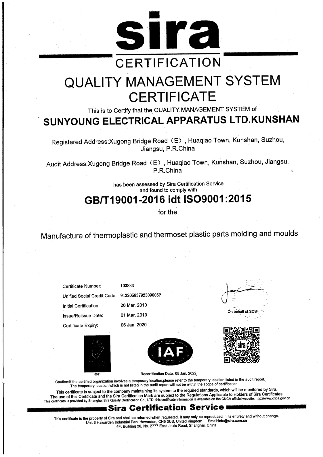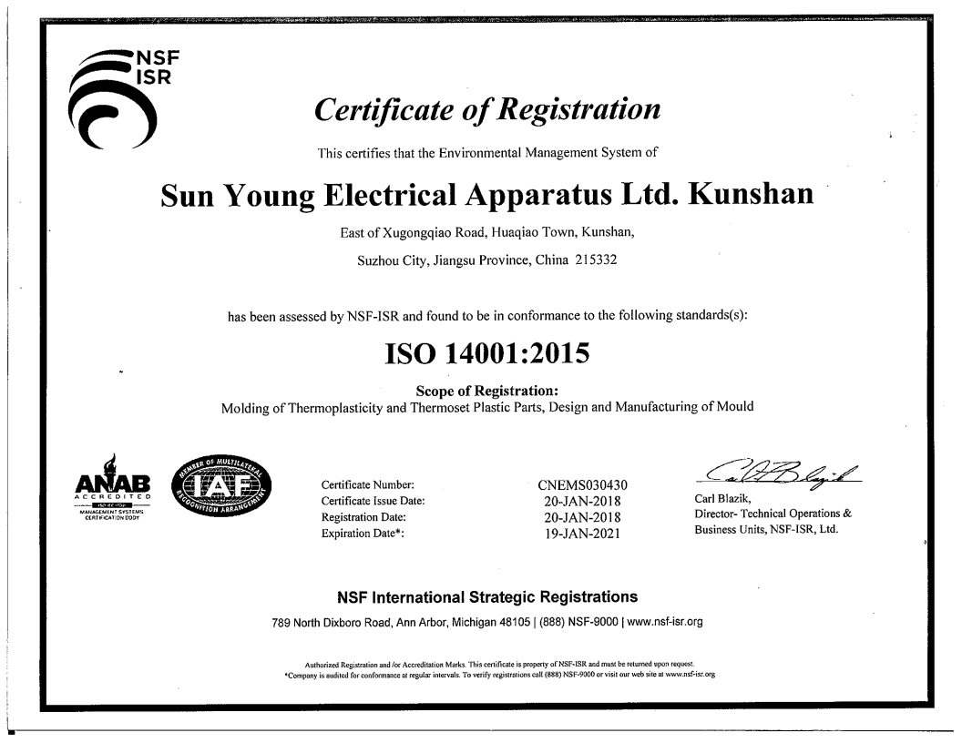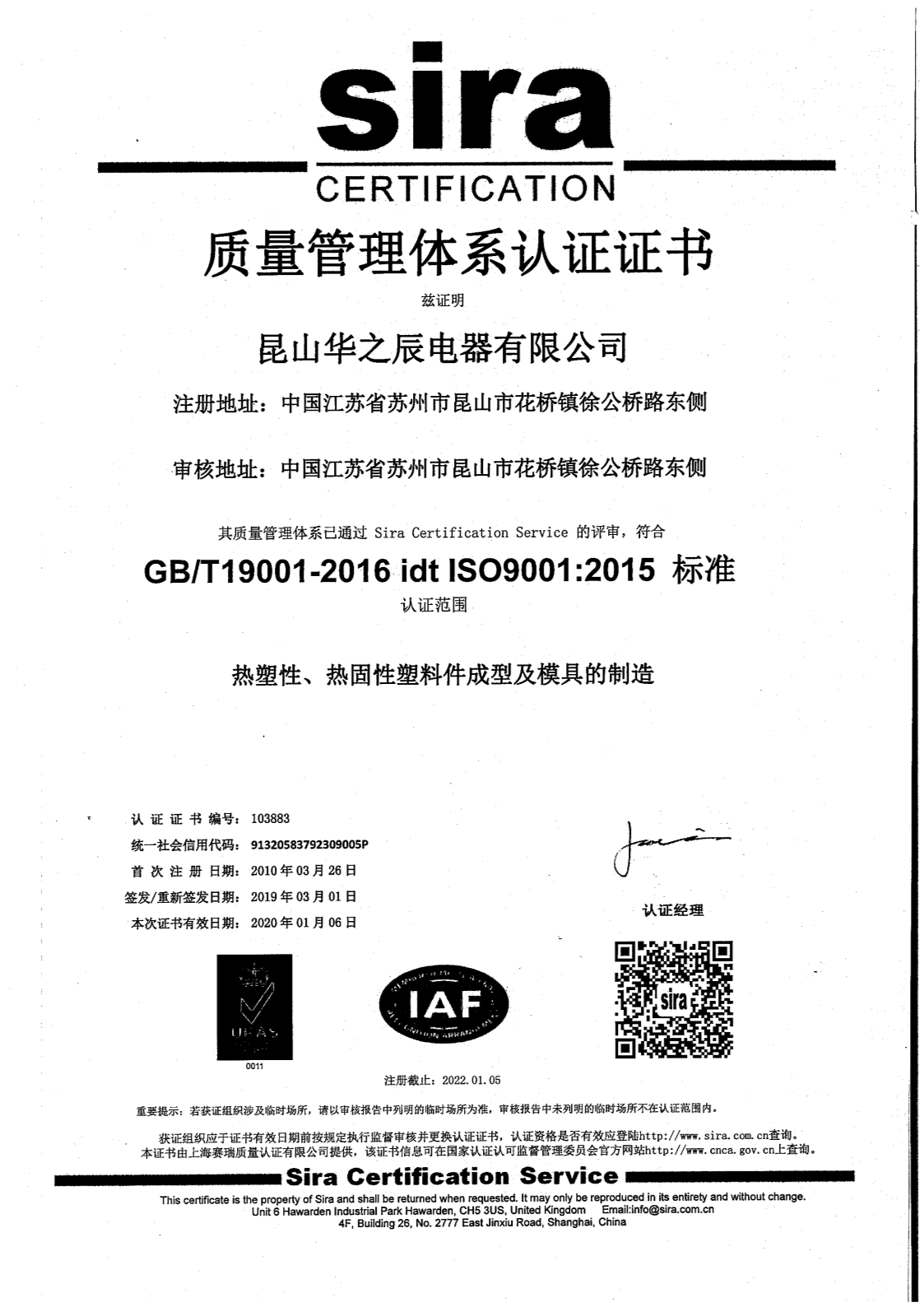 昆山華之辰電器有限公司于2006年9月設(shè)立成立,專(zhuān)業(yè)從事電木(UP,PF,DAP,MF,MU)、 密胺樹(shù)脂、高分子復(fù)合材料( BMC 、 SMC、 DMC )等熱固性塑料和熱塑性塑料 (PBT.ABS.PC.NYLON.PP) 射出成型加工。主要為SIEMENS、廈門(mén) ABB 、施耐德、ELECTROLUX,、伊頓等世界知名客戶(hù)配套加工生產(chǎn)產(chǎn)品?! 」緸殚_(kāi)拓市場(chǎng)制定更優(yōu)的發(fā)展戰(zhàn)略,目前已經(jīng)擁有了進(jìn)口電木、 BMC 射出成型機(jī)幾十臺(tái)( 100T-500T )及先進(jìn)的模具加工設(shè)備、檢測(cè)設(shè)備,為生產(chǎn)出合格的產(chǎn)品提供了充足的設(shè)備保證。通過(guò)公司不斷的進(jìn)取,于2007年 3 月通過(guò) 了ISO9001 :2000 質(zhì)量體系認(rèn)證,并于廠(chǎng)內(nèi)全面推行全員質(zhì)量管理和“ 6S ”運(yùn)動(dòng)。2011年通過(guò)ISO14001體系審核,并與2018年通過(guò)ISO14001體系跟蹤審核。制定有系統(tǒng)的環(huán)境管理程序。同時(shí)于2015年通過(guò)三級(jí)安全標(biāo)準(zhǔn)化審核,并于2018年通過(guò)復(fù)審?! 」緩哪>咴O(shè)計(jì)制作、制品成型加工與組立一體化之完善運(yùn)營(yíng)流程,更保證產(chǎn)品的品質(zhì)與合理作業(yè)成本,使之在市場(chǎng)上更具竟?fàn)幜?。我們一貫?jiān)持“以質(zhì)為本···